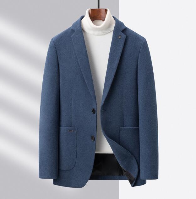 - 新作秋冬 ウールコート ブレザー 紳士スーツ 背広 無地 アウター スリム テーラードジャケット カシミヤ ビジネスコート ブルー XL
