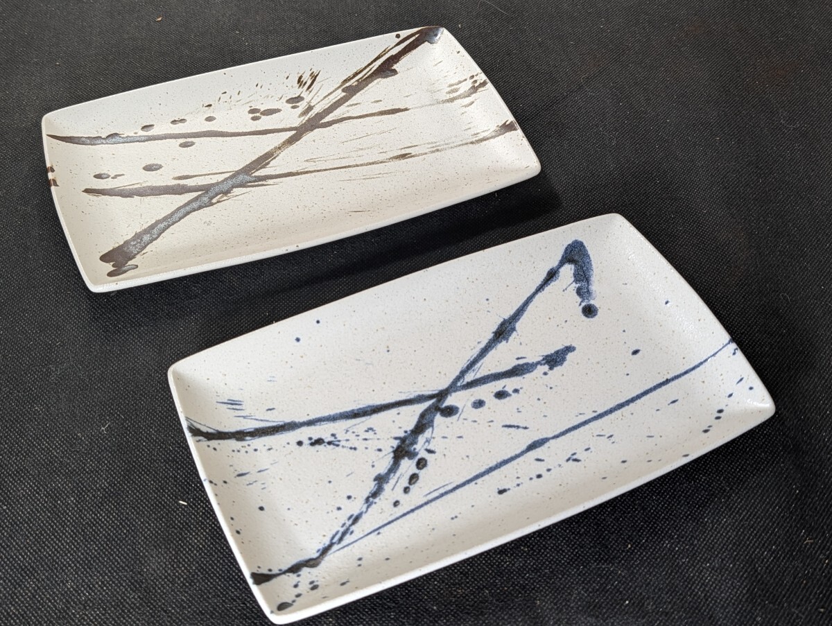 - 吹きかけ釉 長角皿 ペア 未使用 〔まとめて取引がお得⇒追加送料無し〕/中皿/焼物皿/食器/陶磁器/