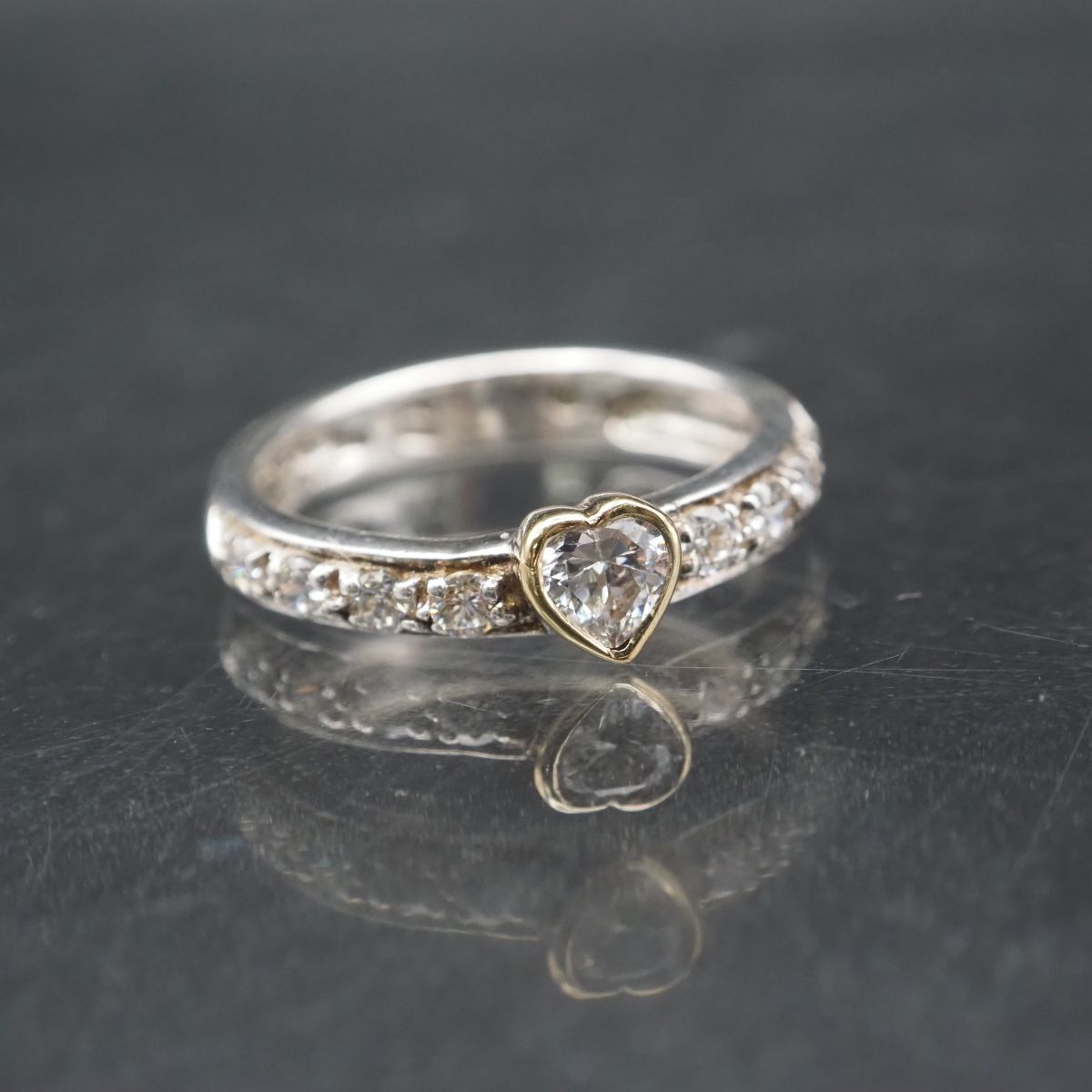 > H650 Folli Follie フォリフォリ 925刻印 リング ダイヤモンド風 ハート ゴールド デザイン シルバー 指輪 9号
