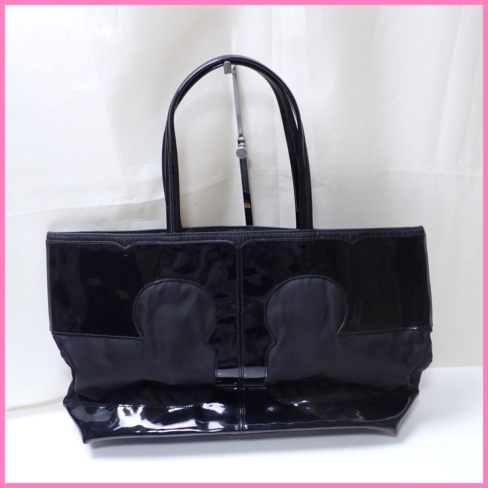 - ★Tory Burch/トリーバーチ エナメル トートバッグ/ブラック/異素材切替/肩掛けOK/A4対応&1835300077