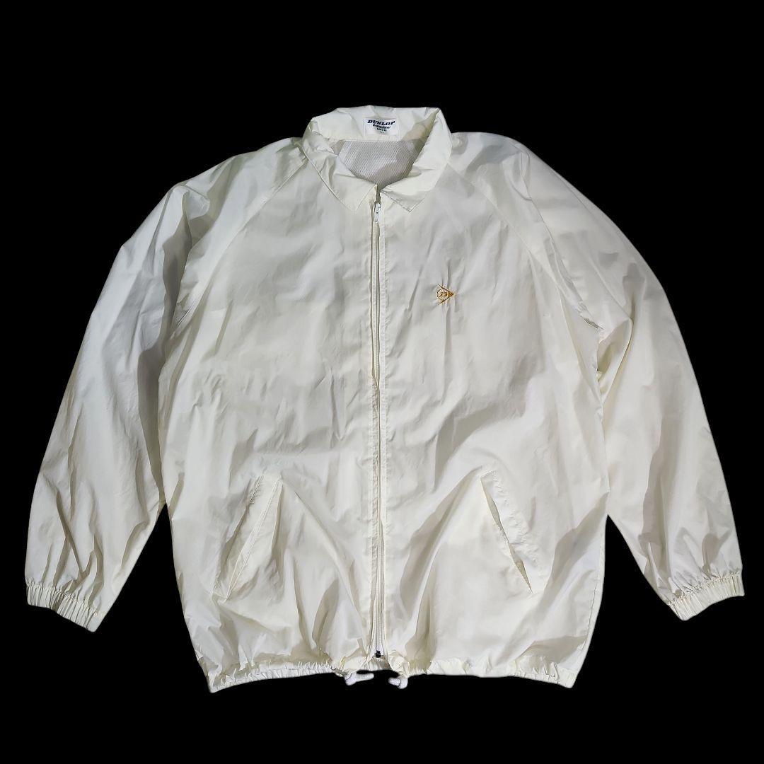 > OLD DUNLOP 薄手 ジップアップ ナイロンジャケット・軽量 袖口ゴム オフホワイト ワンポイント刺繍 グランパコア 68525