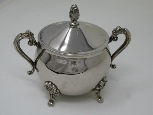 ◆アンティーク シュガーポット ポット 猫脚 メーカー不明 シルバー系 中古◆11643