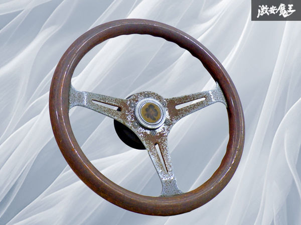- 【破損無し!】社外 汎用 ハンドル ステアリングホイール ステアリングハンドル ウッド 木目 直径約36cm 棚17L