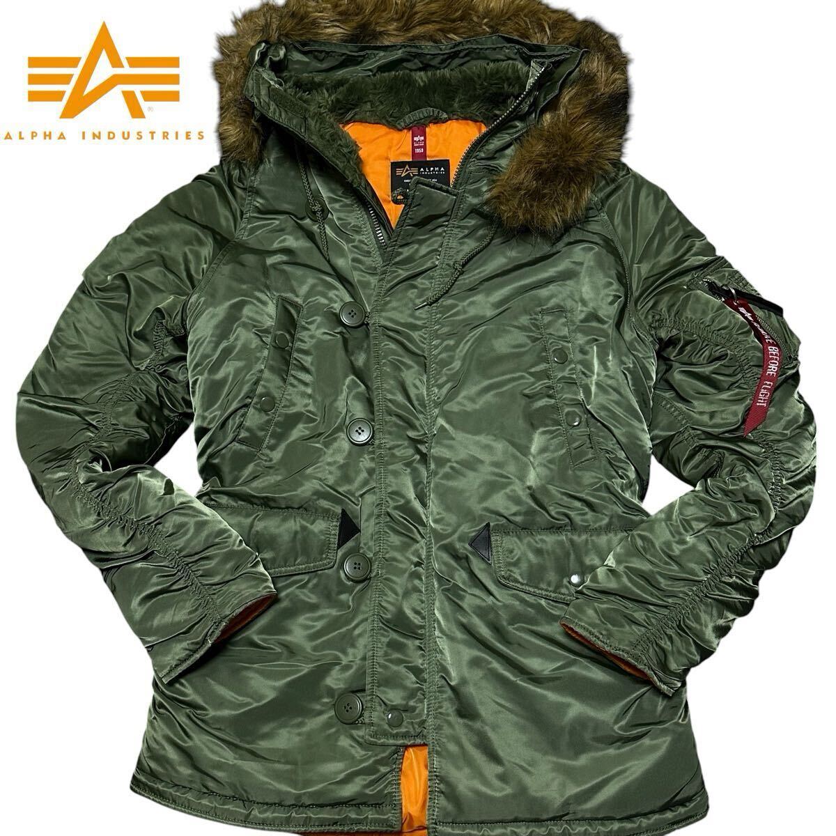 > 極美品/M相当●アルファインダストリーズ N-3B フライトジャケット ファー リボン付き 極暖 ミリタリー レプリカグレー ALPHAINDUSTRIES