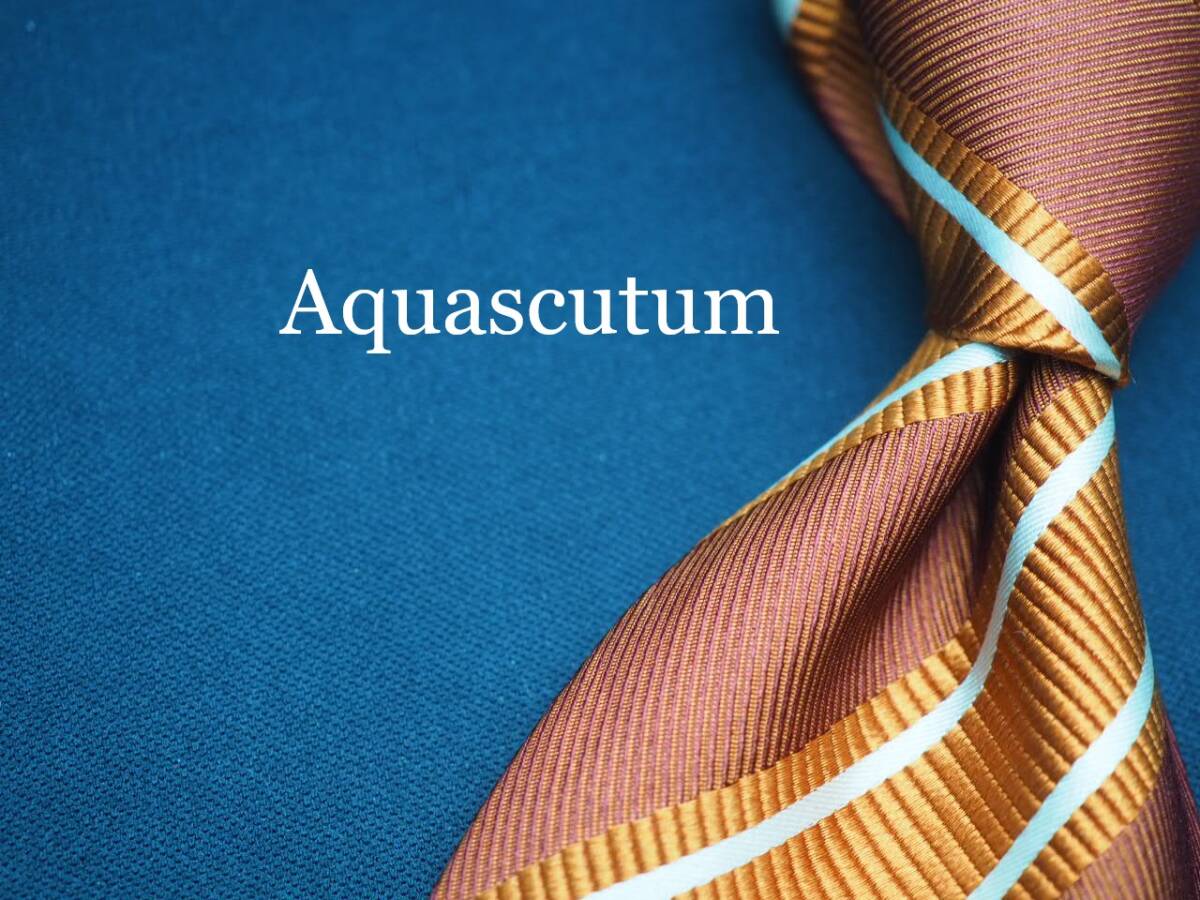 > 美品【Aquascutum アクアスキュータム】 G1197 ブラウン系 SILK ブランド ネクタイ 古着 良品 転売 仕入