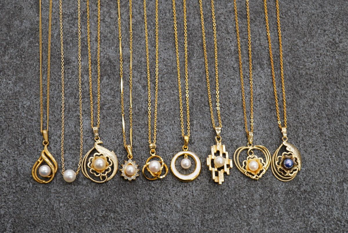 - B1234 アコヤ真珠など 本真珠 パール ゴールドカラー ネックレス ペンダント セット ヴィンテージ アクセサリー 大量 まとめて おまとめ