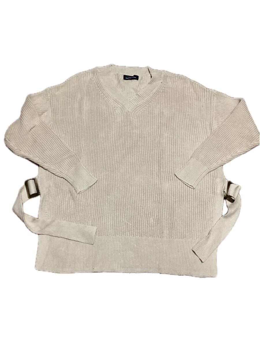 > ユナイテッドアローズ グリーンレーベルリラクシング ベルト付き コットンニット Vネック ベージュ M ゆったり 長袖 セーター ニット