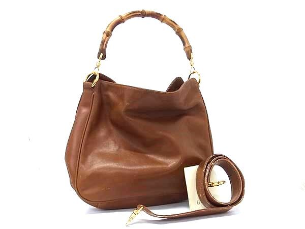 - 1円 GUCCI グッチ 001 0166 1638 バンブー レザー 2WAY ワンハンドル ハンドバッグ ショルダー 斜め掛け レディース ブラウン系 BQ2604