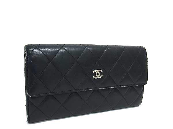> 1円 CHANEL シャネル ココマーク マトラッセ ラムスキン 二つ折り 長財布 ウォレット レディース ブラック系 FN7898
