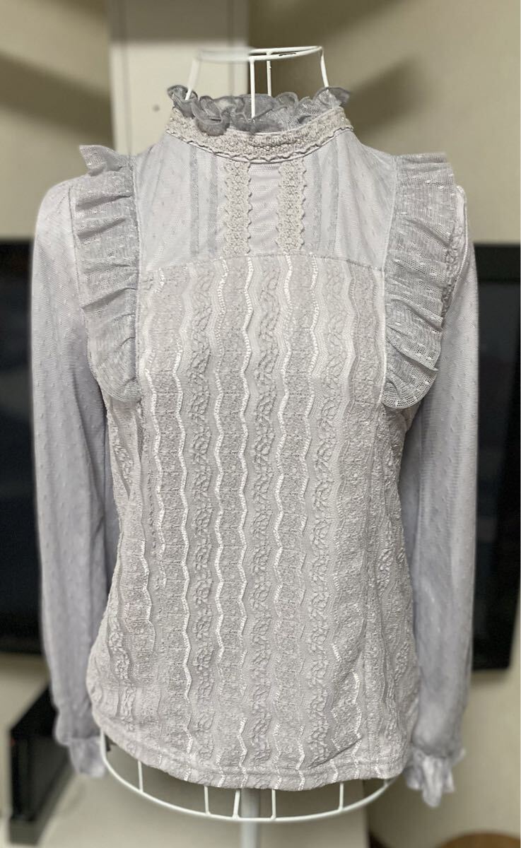 - 美品axes femmeフリル レース ブラウス ハイネック 長袖 グレー系