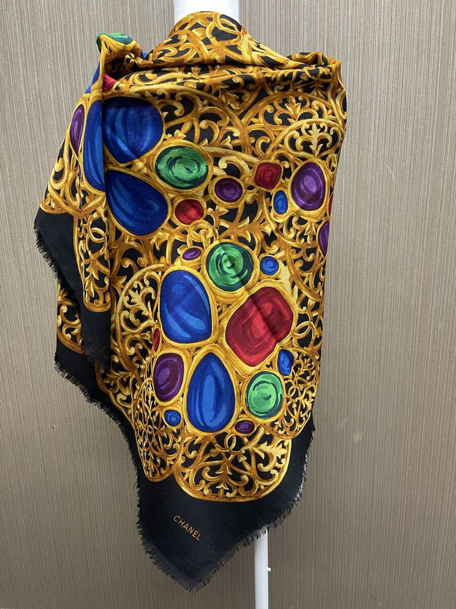 - 1000円~特大サイズ!正規品 CHANEL シャネル ジュエリー柄 カシミア シルク ストール スカーフ タグあり ヴィンテージ O-65