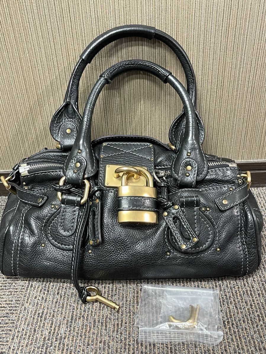 > 1000円~正規品 極美品 クロエ Chloe パディントン パドロック キー 南京錠あり シリアルあり 黒色 ゴールド ヴィンテージ 訳あり b-8