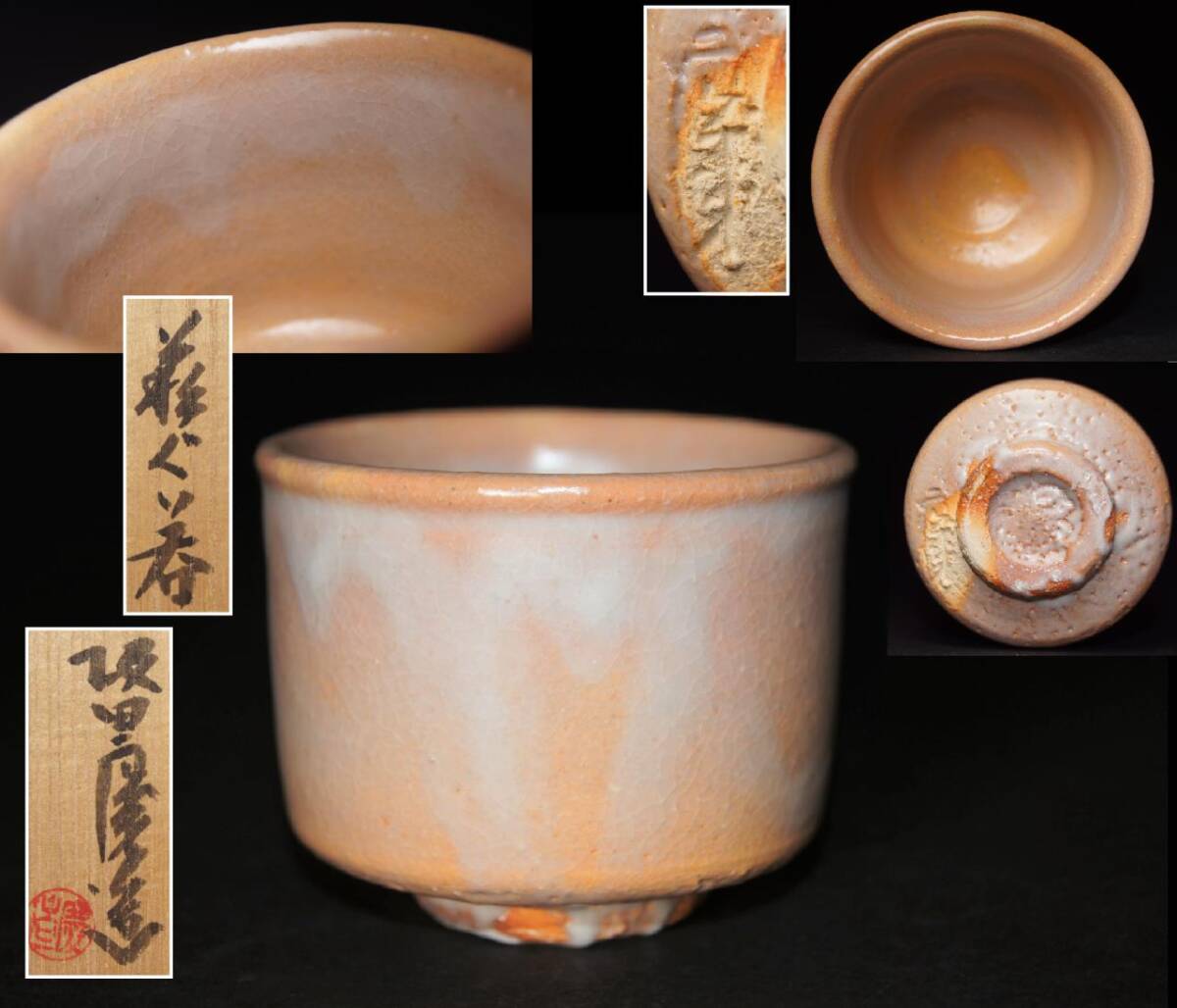 - 真贋保証■十五代 坂田泥華 /坂田慶造■ 萩ぐい呑 共箱・栞付 萩焼 酒器 酒杯 酒盃 盃 検:日本酒 酒肴