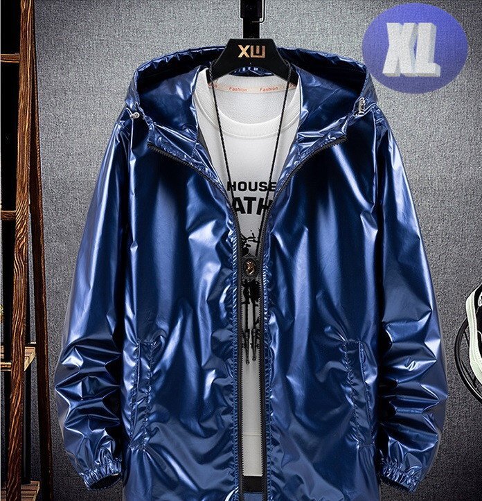 - フード付き ジップアップパーカー ブルー XL トレーナー アウター 防寒 n730-bl