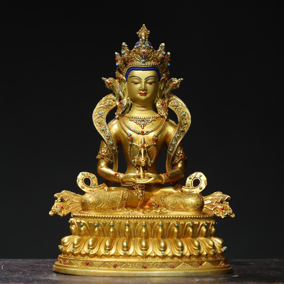 - 旧蔵 古銅彫 塗金 描彩 長寿佛 佛像 古擺件 古置物 中国古玩 骨董品 時代物 稀少唐物