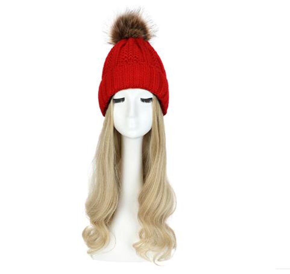 - ウィッグ付きニット帽 ニット帽/レッド ウィッグカラー/M ロングヘアー イメチェン 髪色チェンジ コスプレ