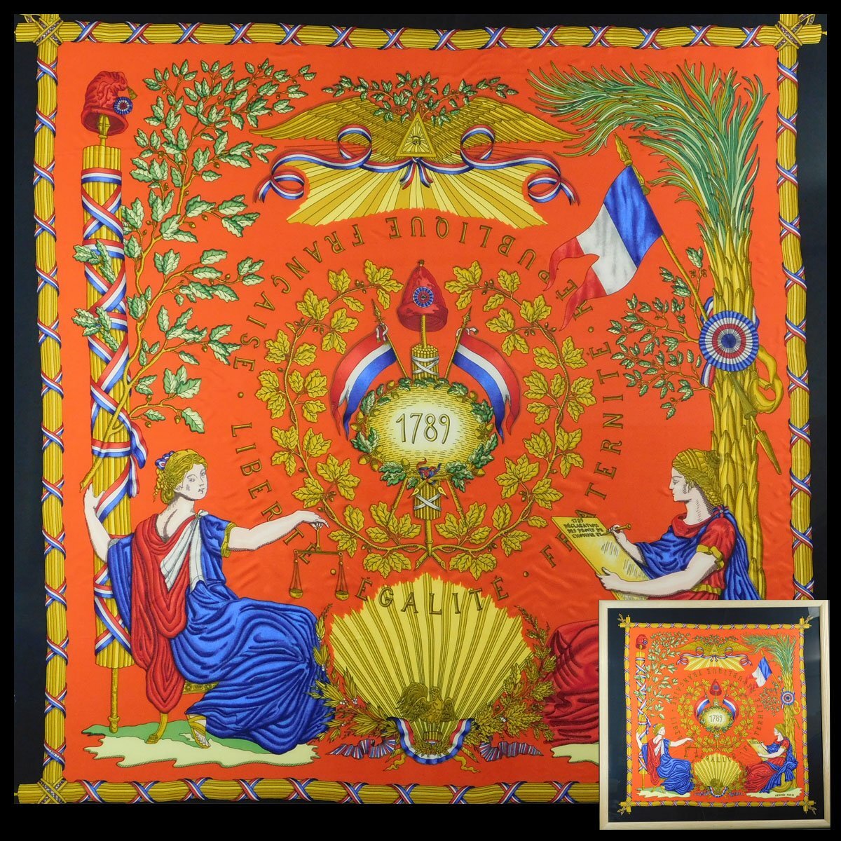 > エルメス HERMES カレ 90 額装 1789年フランス革命を記念して スカーフ シルク ブラック レッド マルチカラー ka2511N07
