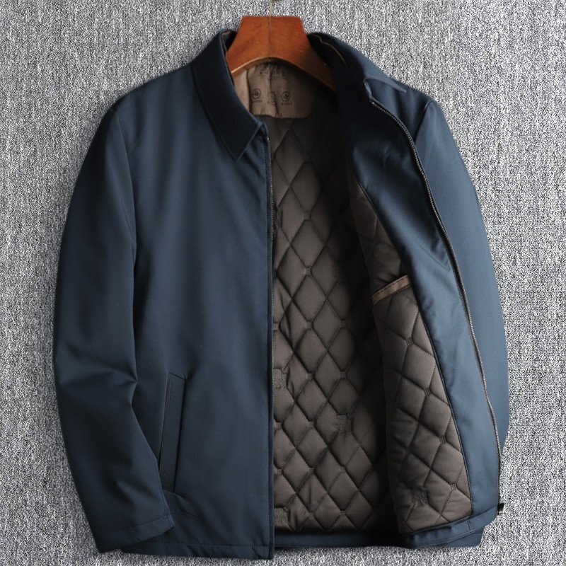 > 新品 高級 中綿ジャケット 秋 冬 厚手 防風 撥水 キルティング ビジネス 冬服 コート 紳士 通勤 ジャンパー メンズ ブルゾン 濃紺 T9081-XL