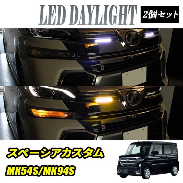 > スペーシアカスタム MK54S MK94S デイライト led 2色発光 ホワイト×アンバー 極細 面発光 SMD42灯 左右セット