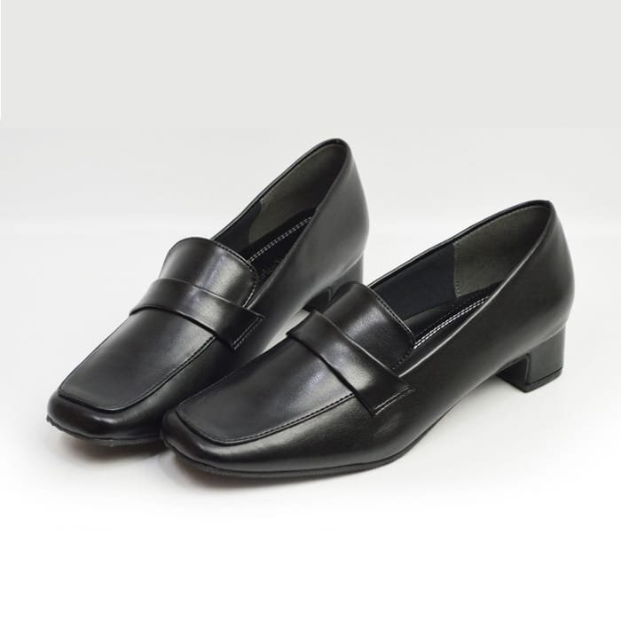 - 新品■23.5cm パンプス レディース 3.5cm ヒール 低め 幅広 3E スクエアトゥ 痛くない クッション 通勤 オフィス【エコ配送】