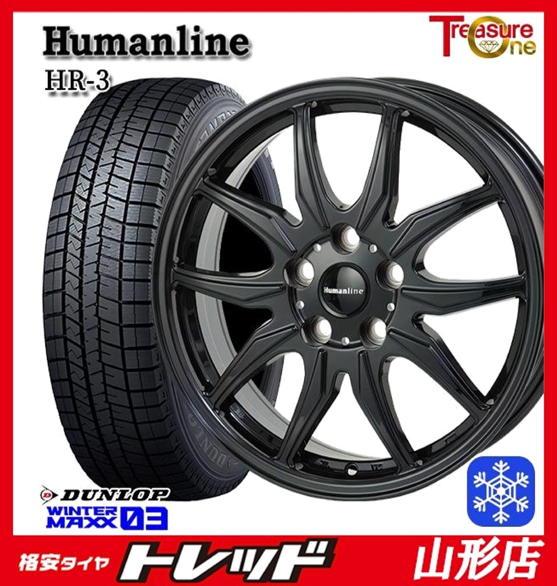 - 山形店 新品 冬タイヤホイールセット ヒューマンラインHR-3 16インチ 6.5j 5H114.3 +38 BK DUNLOP ウィンターマックス03 205/65R16 2024年