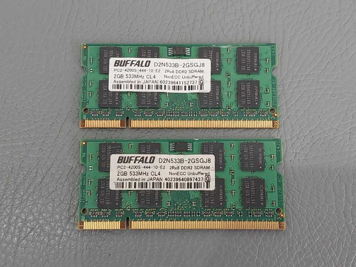 - 今だけ送料無料!【メモリ管①】 ☆☆2枚セット☆☆ バッファロー/BUFFALO PC2-4200S-444-10-E2 2Rx8 DDR2 2GB 533MHz CL4 ノート用メモリ
