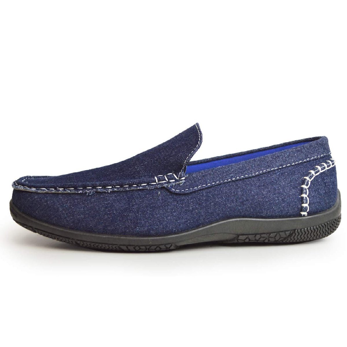 > 新品■28~28.5cm ドライビングシューズ 軽量 防滑 メンズ スリッポン デニム 車 運転 靴 ローファー カジュアル ステッチ【エコ配送】