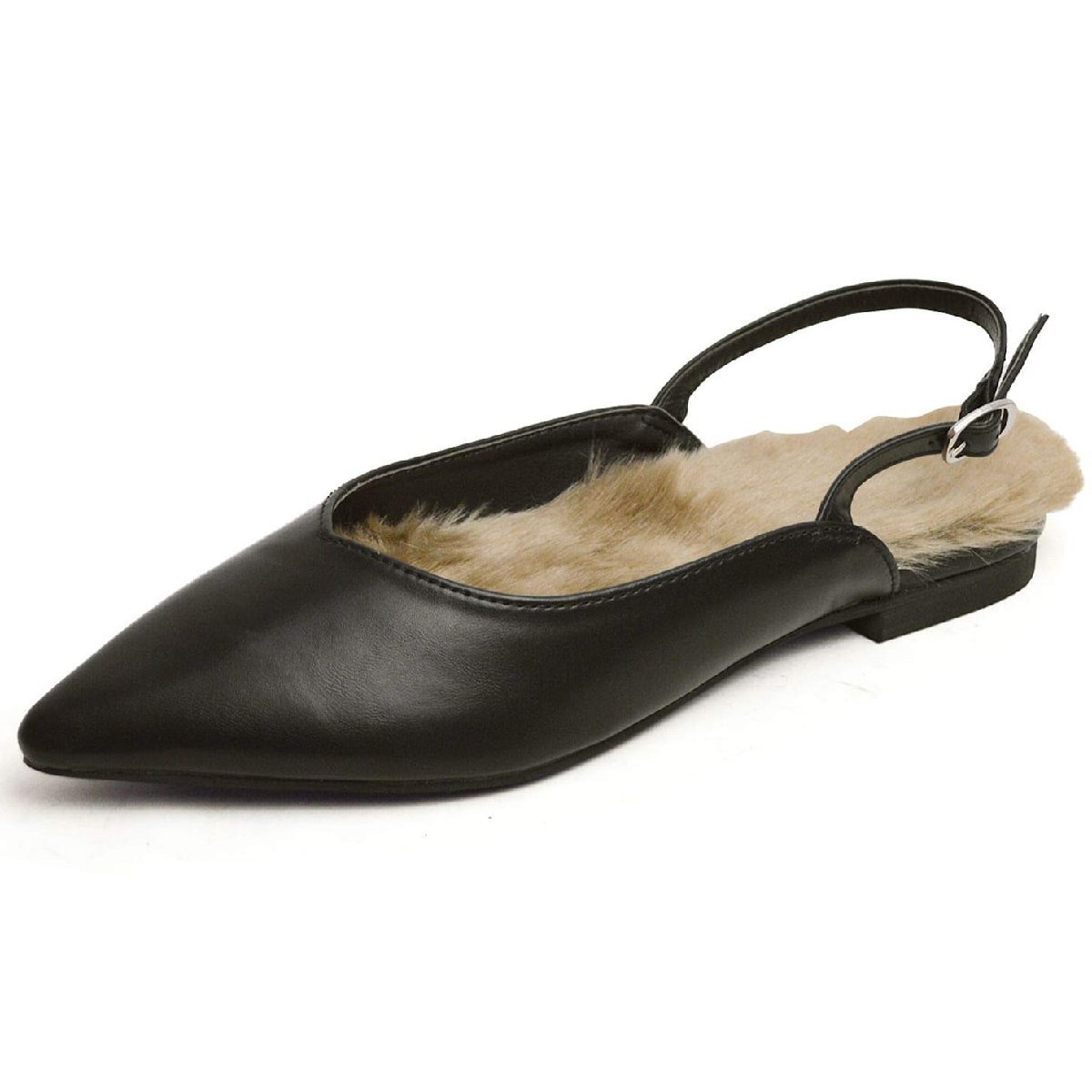 - 在庫処分■新品【23~23.5cm】レディース フラット パンプス ファー ストラップ付 ポインテッドトゥ サンダル カジュアル 靴【エコ配送】