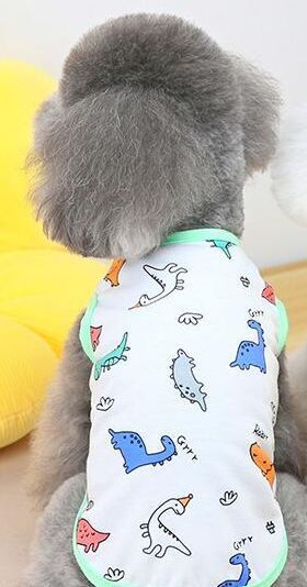 > ◎送料無料・新品★犬の洋服 半袖Tシャツ 恐竜柄 XLサイズ シーズー、パグほか