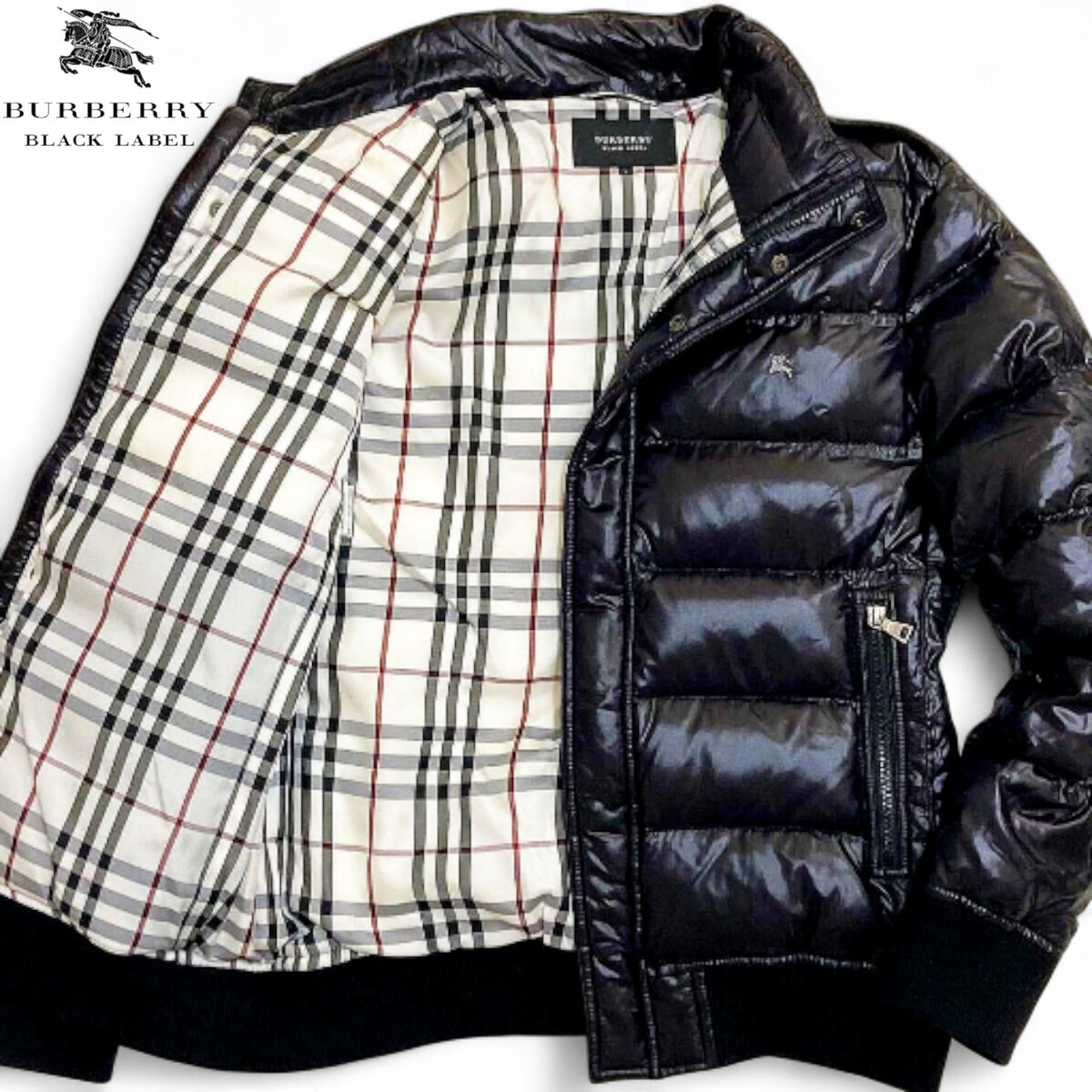 > 極美品●L バーバリーブラックレーベル メンズ 肉厚ダウンジャケット ノバチェック 極暖 ライダース BURBERRY ホースロゴ 刺繍 ブラック
