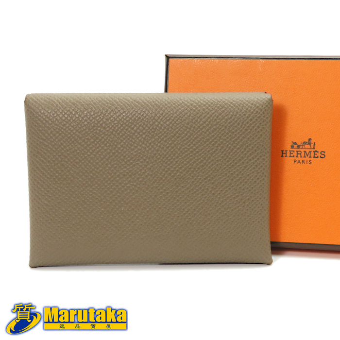 - 【エルメス カードケース】カルヴィ デュオ コンパクト エプソン エトープ W刻印 2024年 メンズ レディース ミニ財布 名刺入れ HERMES 中古
