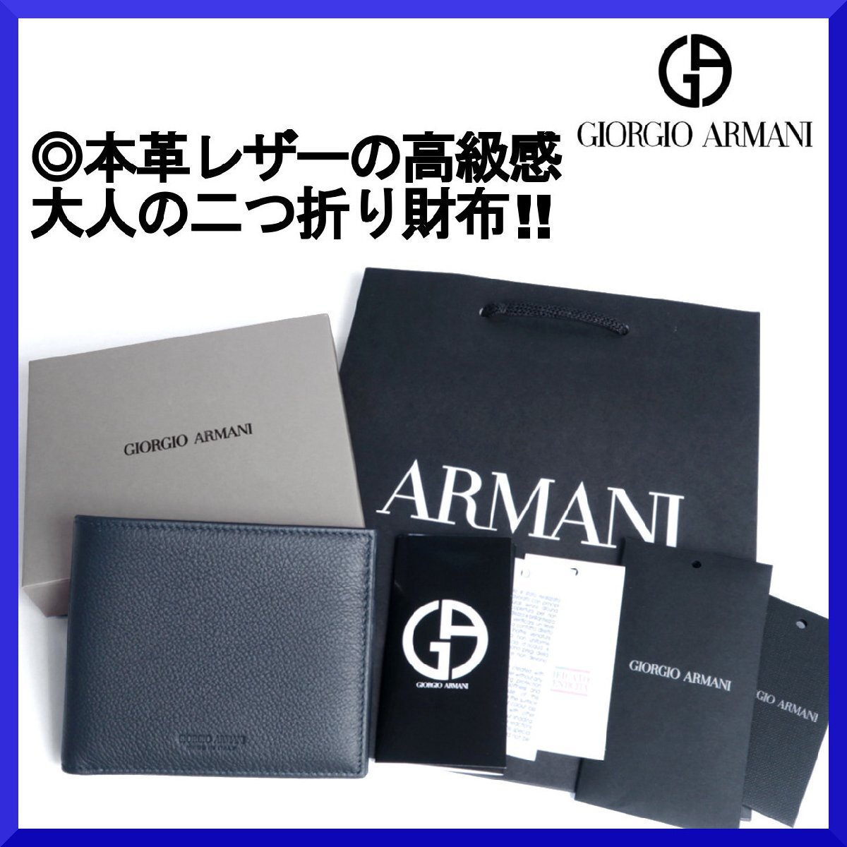 - 価格7万新品本物ジョルジオアルマーニGIORGIO ARMANI【総本革レザーの高級感】お洒落な濃紺!!二つ折り財布/カードケース/箱付/メンズ