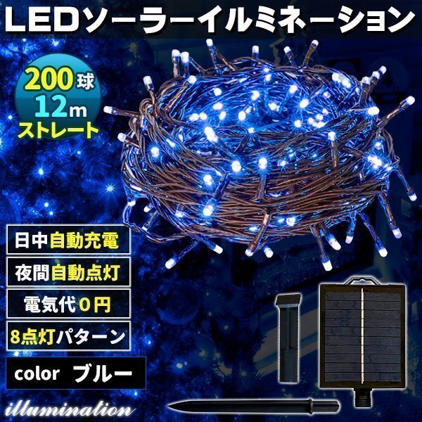 - ソーラー イルミネーション 屋外 クリスマス ストレート 屋外用 イルミネーションライト 200球 ブルー