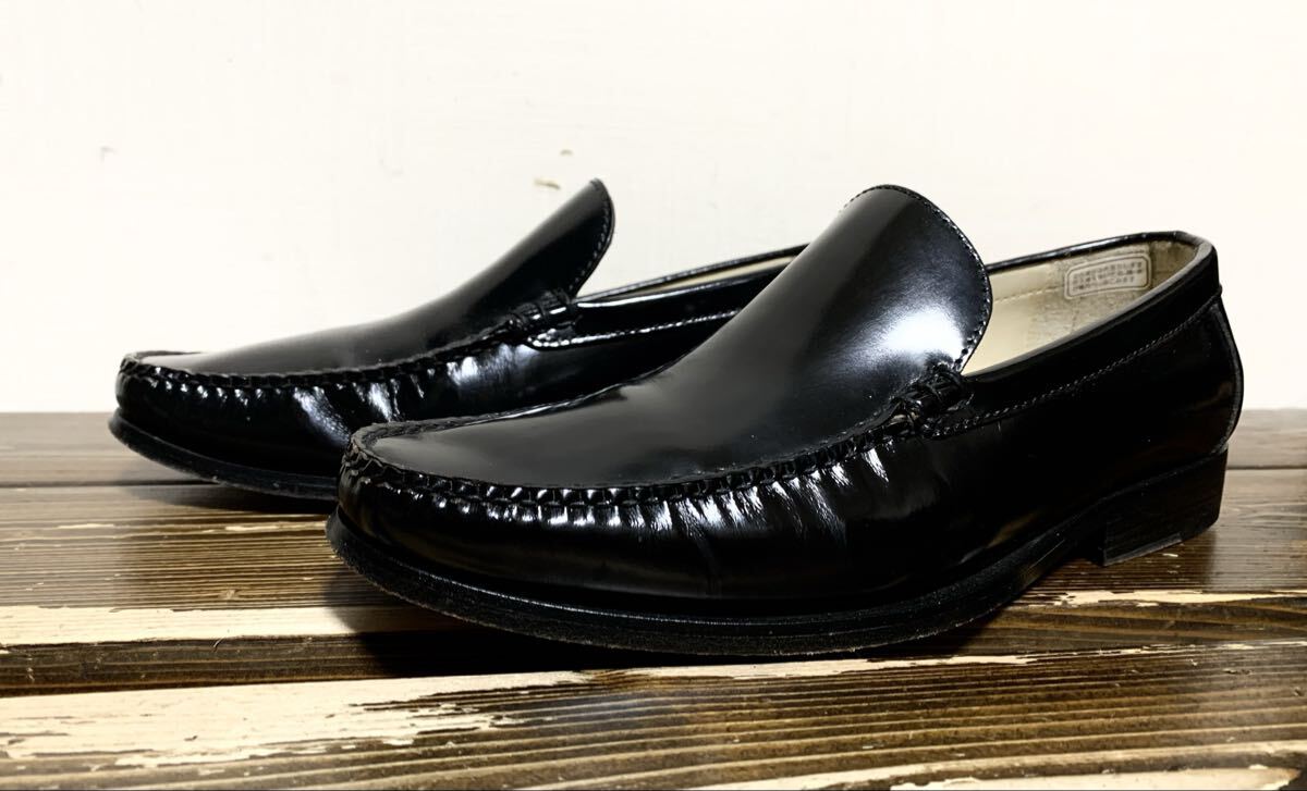 > 美品:REGAL(リーガル).レザー ヴァンプ ローファー スリッポン シューズ 7(25/黒/上質.牛革/ビジネス/50s/ロカビリー/dry bones madras)