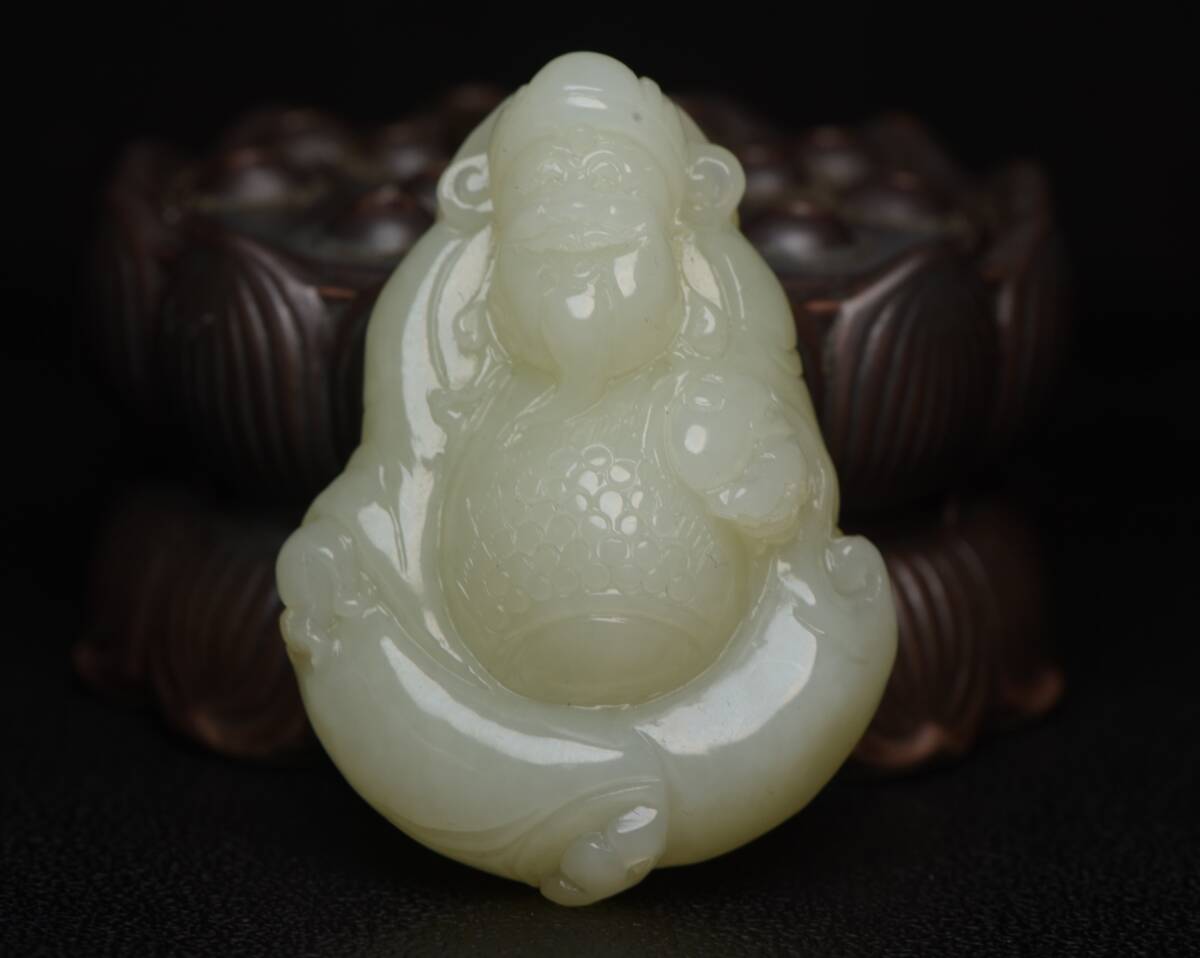 - 旧蔵 和田玉彫 財神 根付 中国古玩 骨董品 時代物 稀少唐物