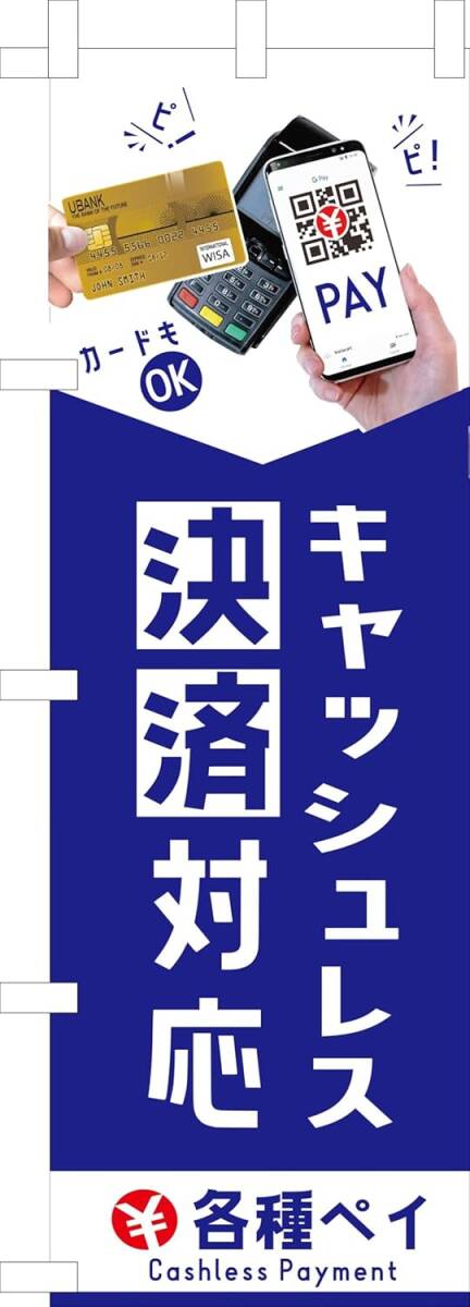 - のぼり旗「キャッシュレス決済 のぼり スマホ決済 幟旗 各種ペイ 楽天ペイ ぺいぺい 幟旗 paypay 電子マネークレジット決済」送料360円