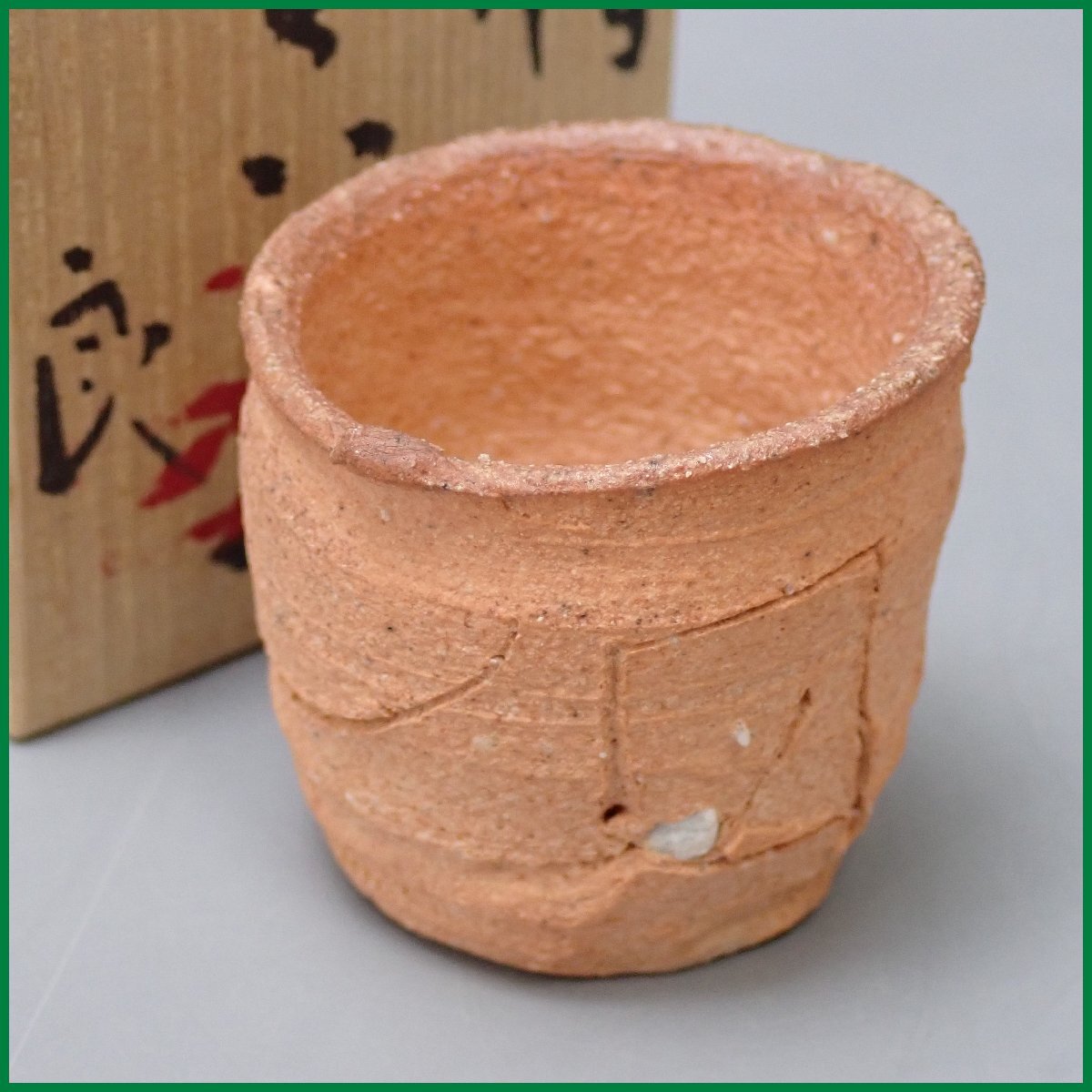 - ☆美品 鯉江良二 信楽 ぐい呑 共箱付き/陶磁器/酒器/酒盃/猪口/陶芸/焼き物/作家物/和食器&1747000629