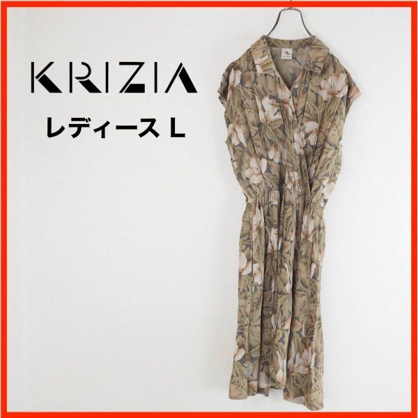 - A3784★美品★KRIZIA*レディース*ノースリーブワンピース*花柄*40*L*ライトブラウン