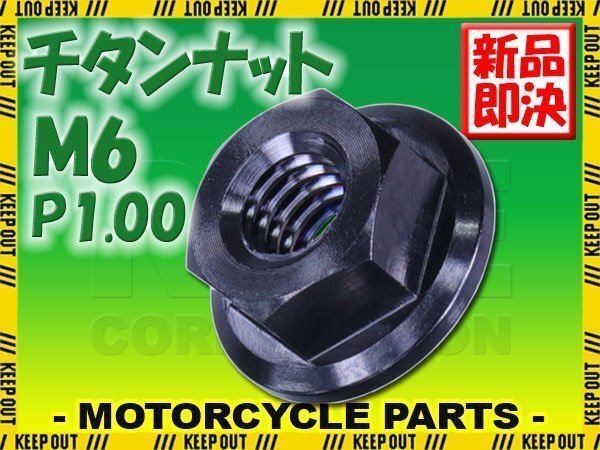 メール便OK!M6 P1.00 チタンナット フランジナット 1個 六角ナット ブラック 6mm ピッチ1.0 バイク 車 自転車 カスタム 軽量化 交換 MTB