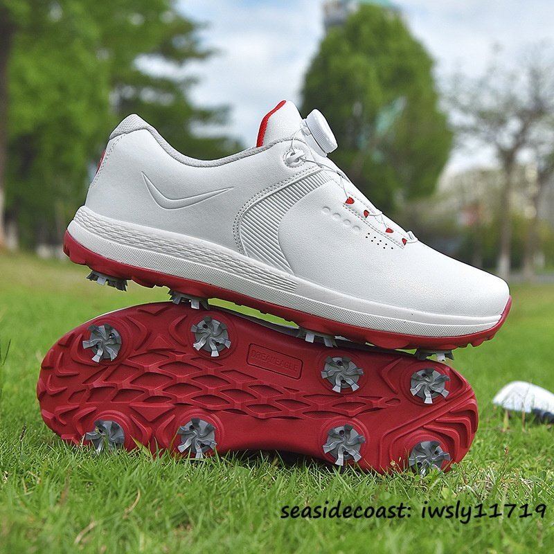 > 高級品 ゴルフシューズ 強いグリップ ソフトスパイク 運動靴 フィット感 軽量スポーツシューズ 新品 弾力性 通気性 防滑 耐磨 白/赤 25.0cm