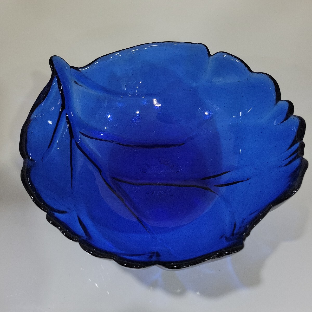 - №9453 中古食器 傷有 ヴィンテージ スペイン製 ガラスボウル ブルー 口径約21㎝