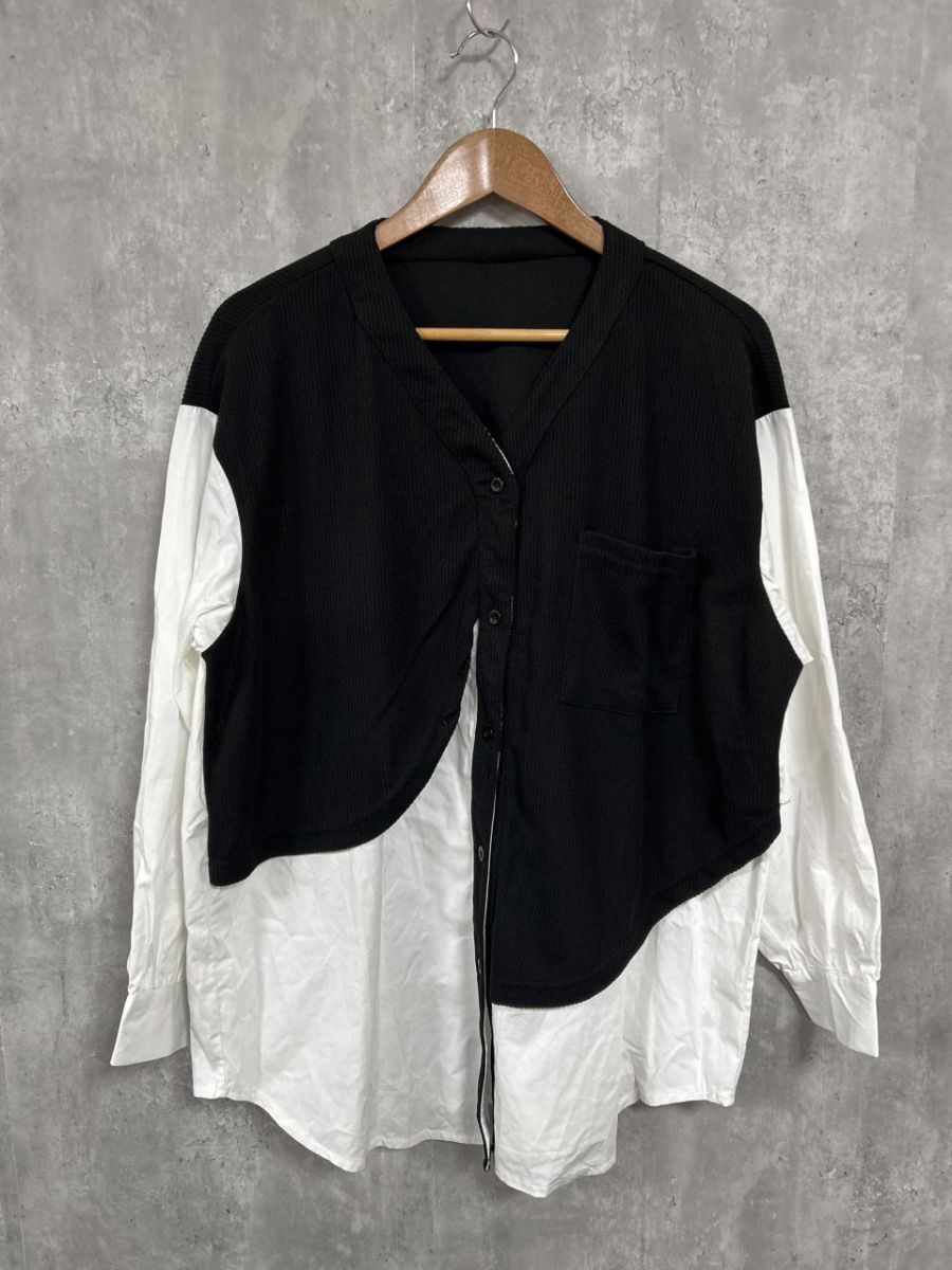 - ネコポスOK chouchou 長袖 ドッキング シャツ sizeM-L/白x黒 ◇■ レディース