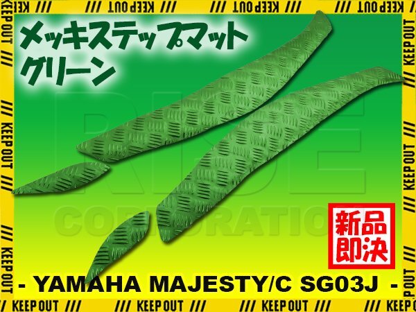 - アルミ調 ステップマット ヤマハ マジェスティ/C SG03J グリーン メッキ バイク ゴムマット ステップボード カスタム 交換 パーツ 部品
