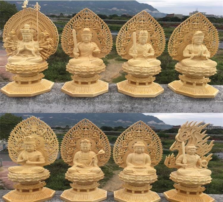 - 八大守護 [不動明王 文殊菩薩 普賢菩薩 大日如来 虚空蔵菩薩 薬師如来 大勢至菩薩像 千手觀音菩薩] 精密細工 木彫仏像 十二支守り本尊