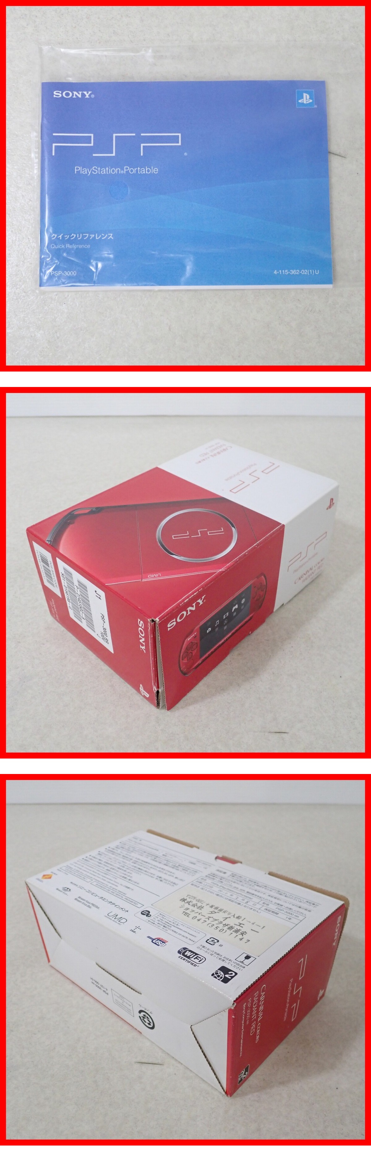> 動作品 PSP プレイステーションポータブル 本体 PSP-3000 ラディアント・レッド RADIANT RED ソニー SONY 箱説付 即決【10
