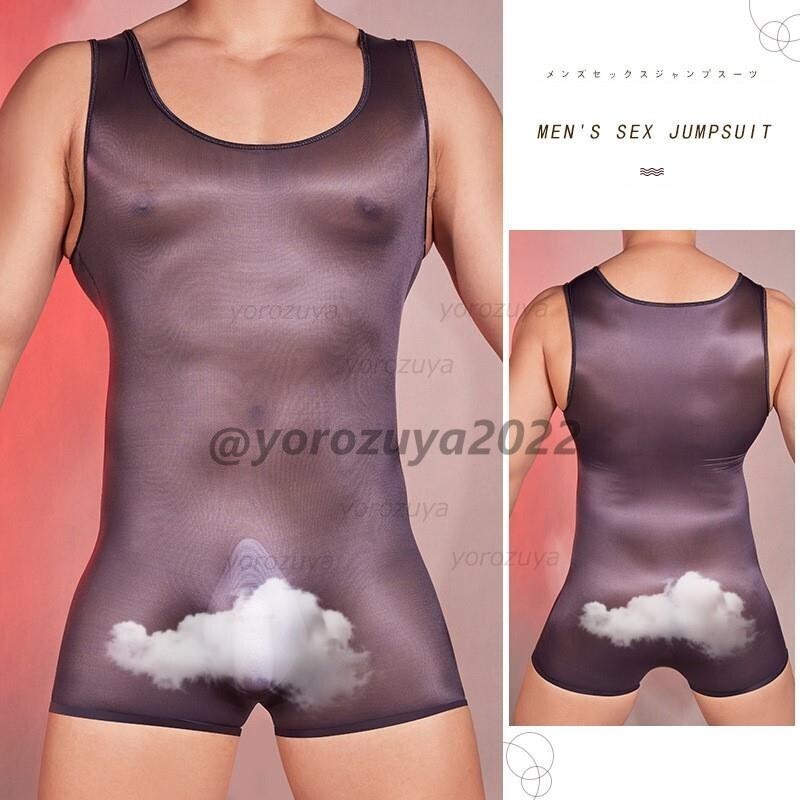 > 158-180-21 メンズ 光沢シルキー フィットボディスーツ【グレーF】男性 下着 コスプレ ジャンプスーツ アンダーウェア セクシー .1