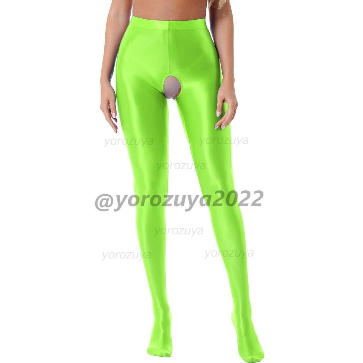 - 117-365-20 光沢 オープンクロッチ ツヤツヤ レギンス パンツ 【グリーンLサイズ】レディース メンズ コスプレ セクシー スパッツ .3