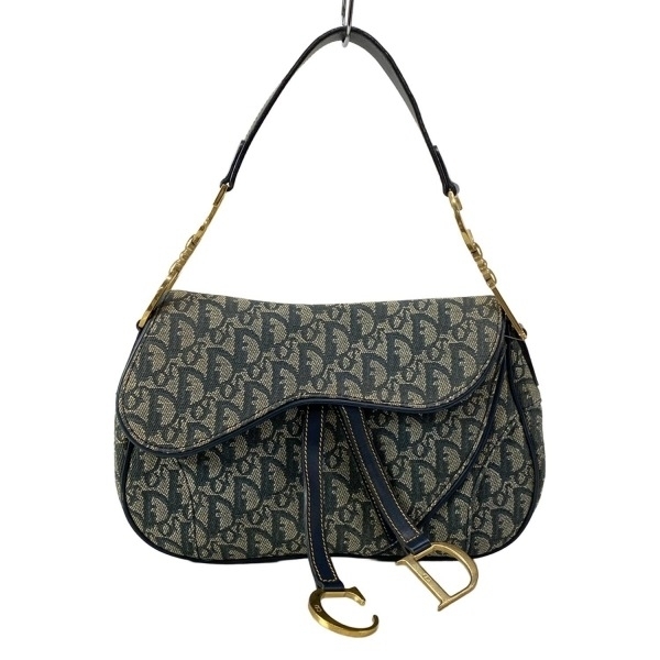 > ディオール/クリスチャンディオール DIOR/ChristianDior ショルダーバッグ ダブルサドルバッグ レザー 白×ネイビー ゴールド金具 バッグ