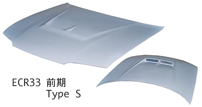 > 「高勢スタウト/STOUT」スカイライン(ECR33)前期用エアロボンネット TypeS(FRP)
