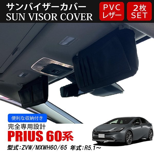 > 新型 プリウス 60系 サンバイザーカバー 収納ポケット付き 日よけ 紫外線防止 PVCレザー ブラック 左右セット